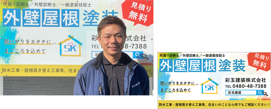 須藤氏:お客様に少しでも安価「安心・安い」工事を提供できたら、と思ったからです。下請け業者として活動していた頃、色々な業者が入ることにより高額になってしまう歯痒さを感じておりました。自社で集客ができるよう、会社にして、お客様に寄り添った提案ができるよう努めたい。その思いで彩玉建装を立ち上げました。