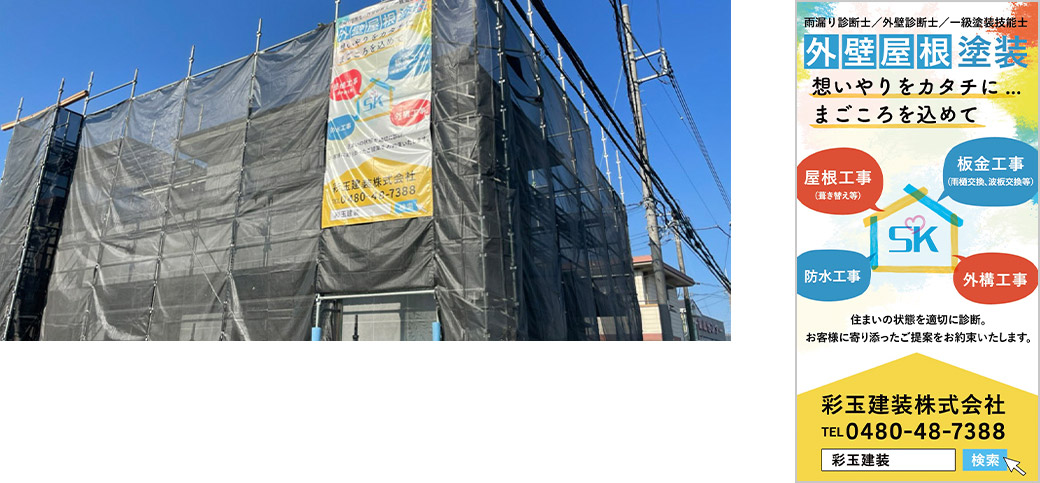 彩玉建装株式会社様は杉戸町にある塗装工事業者です。人と人の関わりを大切に、大事なお住まいを想いやりを持って施工しています。